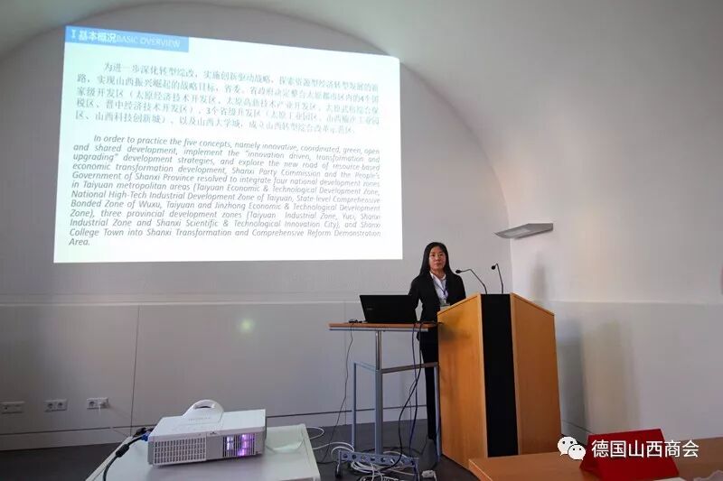 山西综改区国际部副部长要文睿随后向与会的德国来宾介绍了山西综改区的投资环境,图文并茂的从综改区的规划布局,投资优势,优惠政策等方面介绍了山西综改区。山西优秀企业代表李宝山随后也向德方企业代表介绍了本地企业的优势和合作意向。